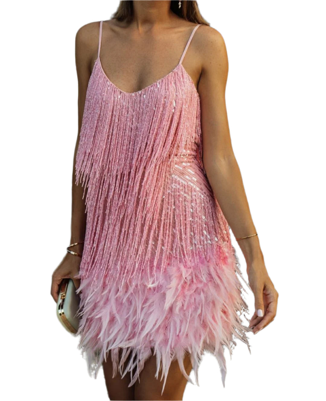 لماذا تختار فستان الغلامور القصير مع الأهداب والريش؟