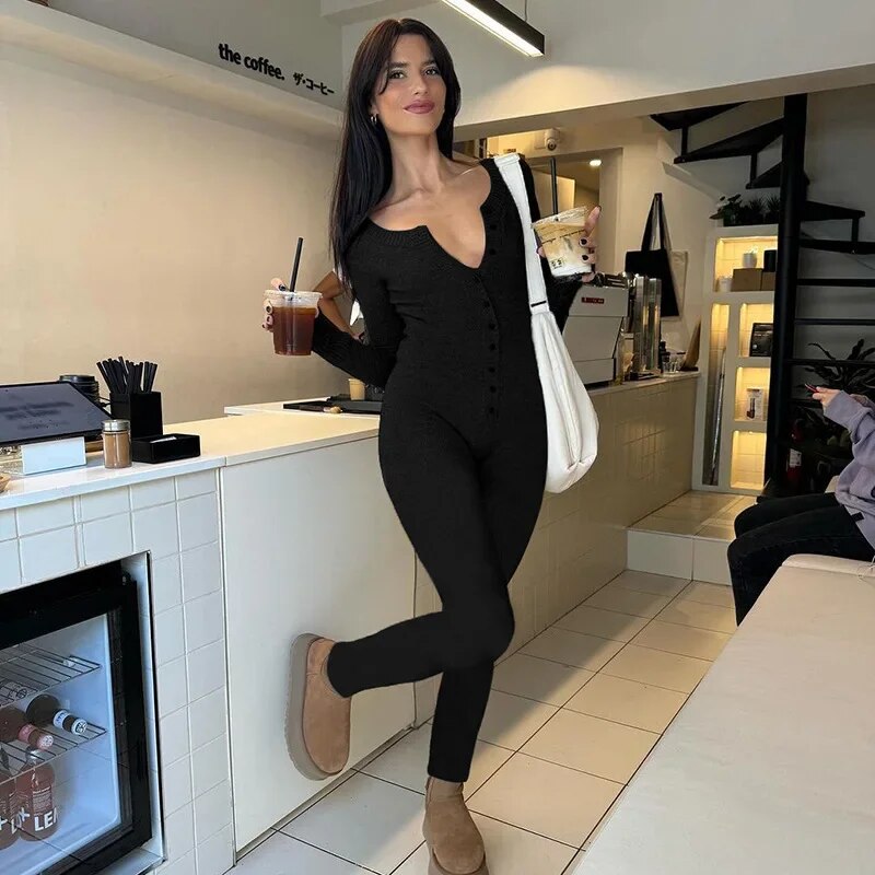 ليا | فستان قصير بأكمام طويلة مع فتحة عنق على شكل V