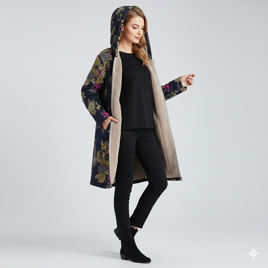 Sanae | Casaco de Inverno com Capuz Feminino — Calor Suave & Estilo Floral