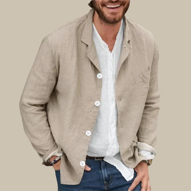 Denne blazer kombinerer elegance og lethed til solrige dage. Dens afslappede men velplejede snit fremhæver silhuetten, samtidig med at den sikrer optimal komfort. Designet med kvalitetsmaterialer, sikrer den god ventilation og en naturlig stil.