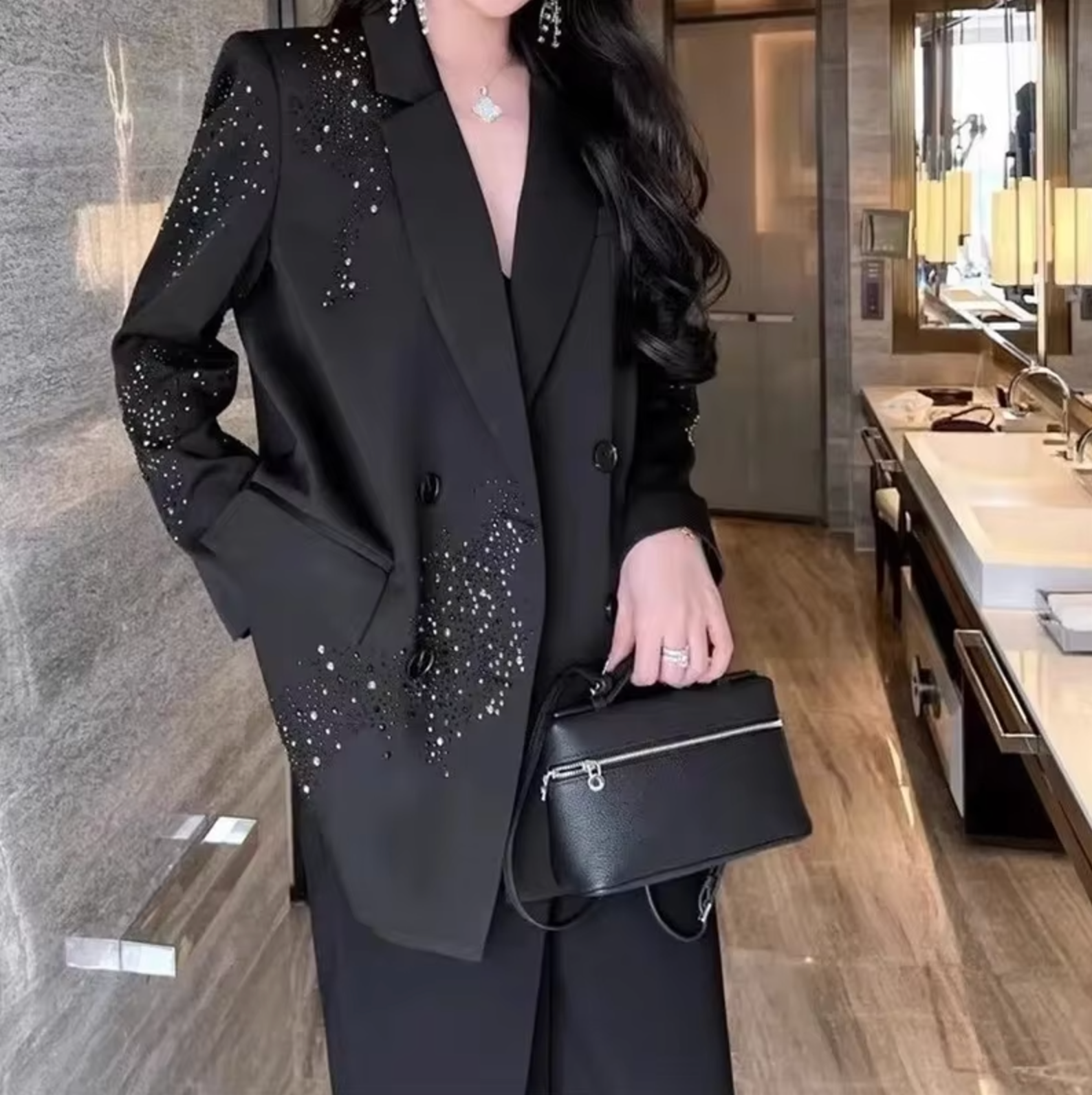 Κατερίνα | Μαύρο Σακάκι Εlegant — Λαμπερή Λεπτομέρεια & Εκλεπτυσμένο Στυλ