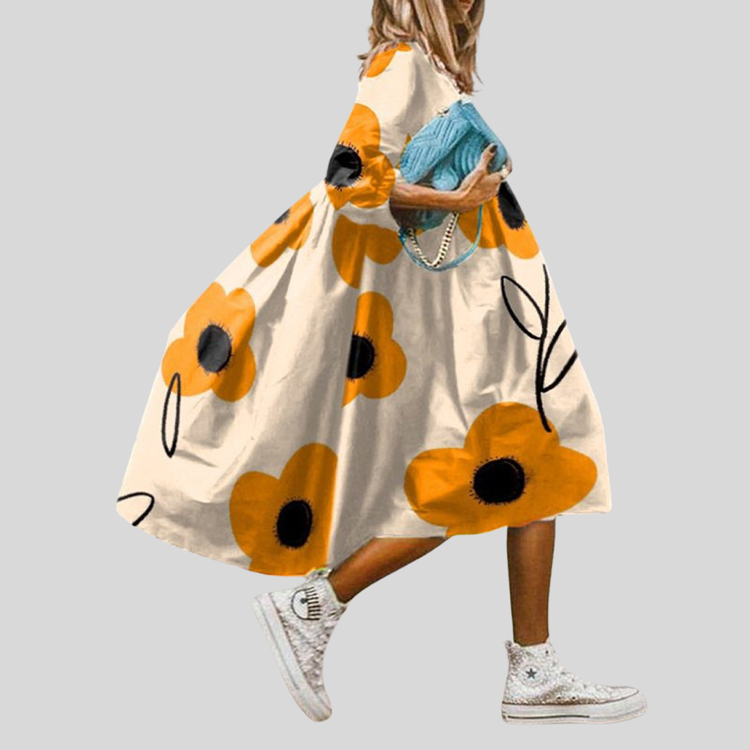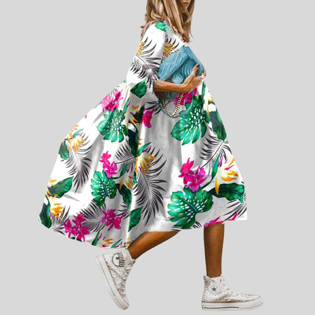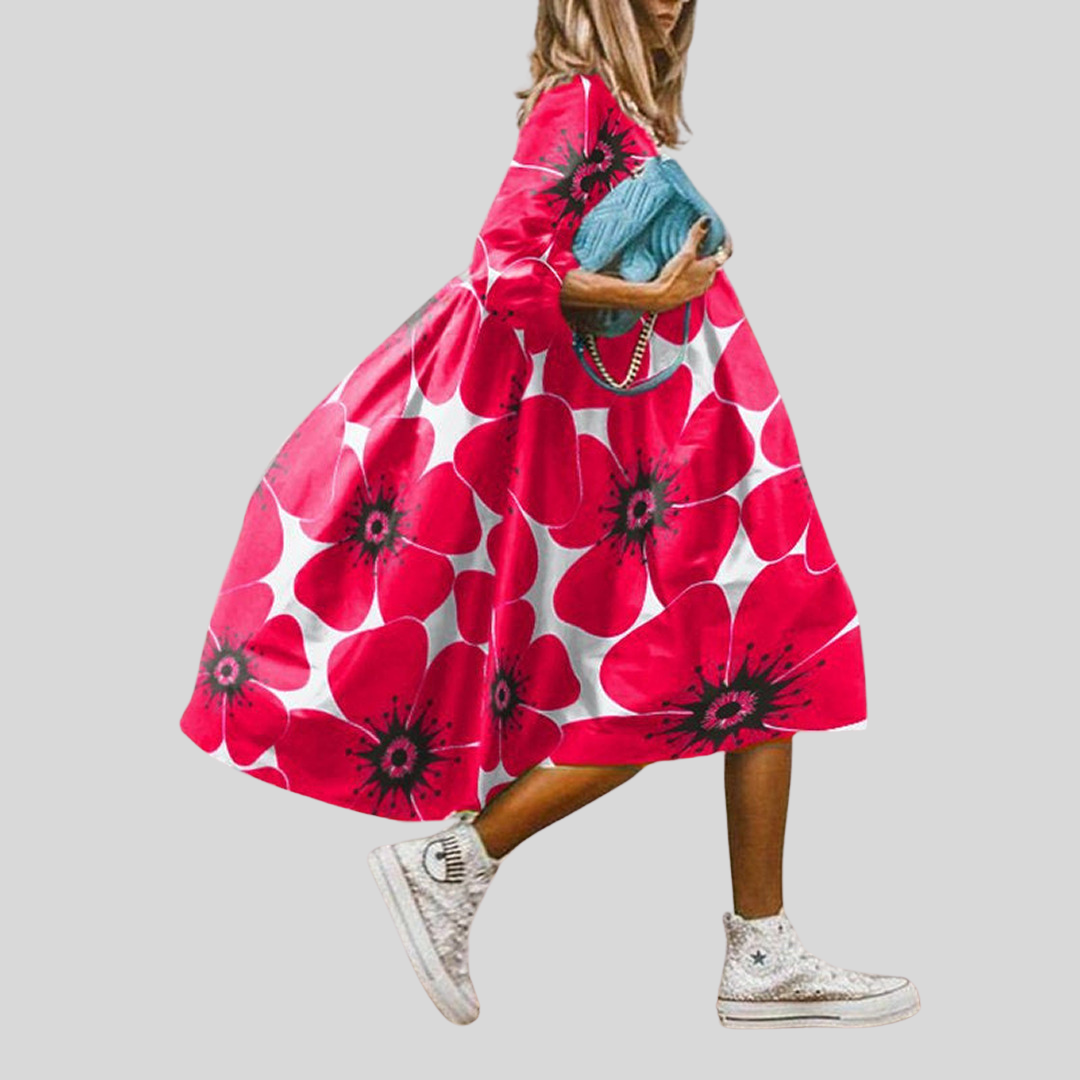Αυτή η midi φόρεμα διαθέτει μποέμικο λουλουδάτο σχέδιο. Διαθέσιμο σε πολλές χρώματα και μεγέθη. Ιδανικό για καλοκαιρινές ημέρες.