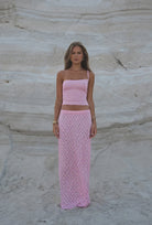 Blandine | Ensemble Rayé Ροζ – Τοπ Χωρίς Μανίκια Και Μακριά Φούστα