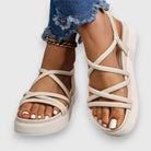 These flat sandals offer a perfect balance between lightness and support. Their elastic strap ensures an easy fit, while the crossed bands add an elegant touch to your outfit. Perfect for walks, summer outings, or relaxed days.