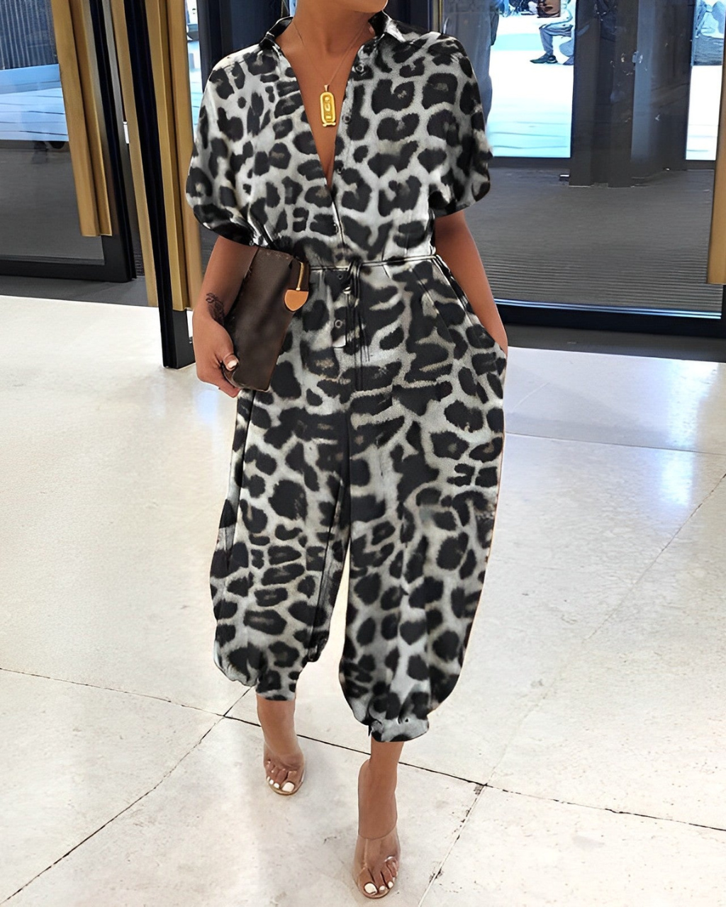 Esta combinación ceñida ofrece un estilo moderno y un corte cómodo. Su diseño abotonado y sus piernas ajustadas aportan un toque de tendencia, ideal para tus salidas o días casuales.