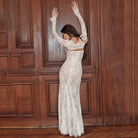 נינון | שמלה ארוכה מבד תחרה עם חוט הידוק ושרוול