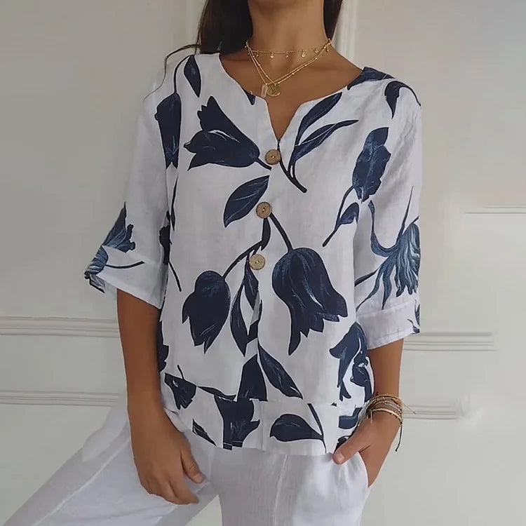 Jeanne | Blusa Floreale Elegante – Chiusura Centrale e Maniche Corte