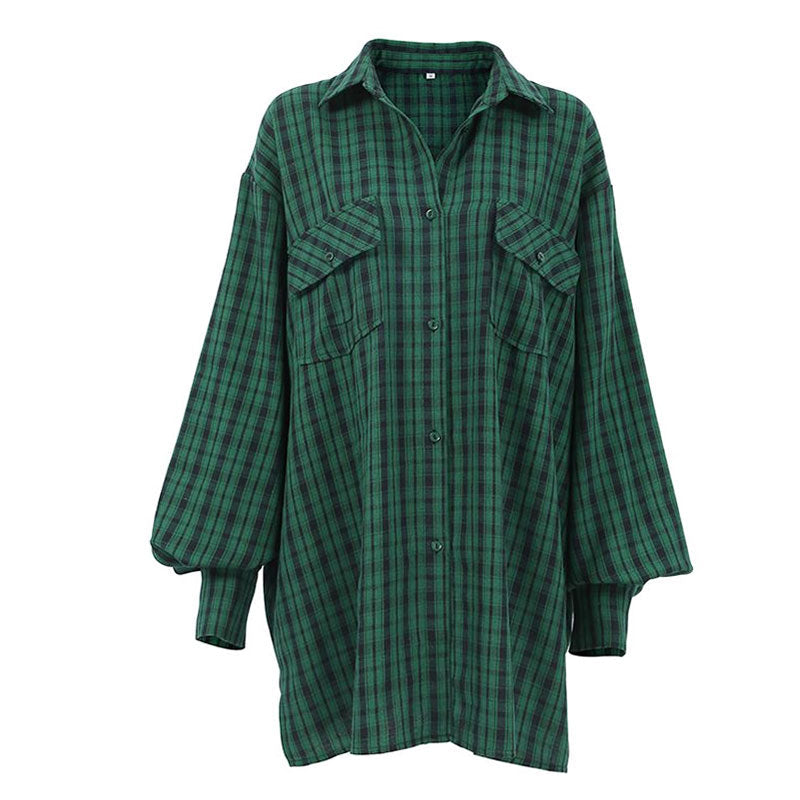 Wafa | Camicia a Bottoni a Quadri con Spalle Cadenti