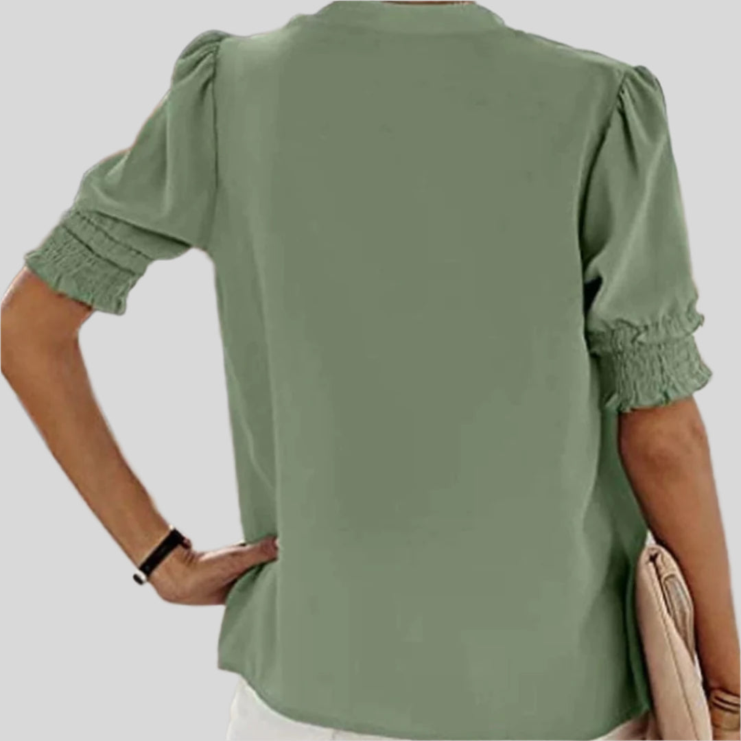 La blusa unisce eleganza e comfort per elevare il tuo stile con raffinatezza. Le sue maniche arricciate aggiungono un tocco femminile, mentre il suo taglio flatterà tutte le silhouette. Disponibile in vari colori e taglie, si adatta a tutte le tue esigenze.