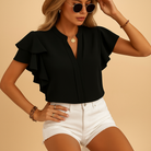 POR QUE ESCOLHER A BLUSA COM BABADOS E COLARINHO EM V ELEGANTE?