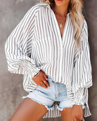 Lamia | Blusa Larga Feminina – Listras Elegantes e Estilo Descontraído