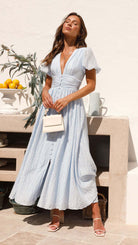 Tilda | Vestido Longo de Verão com Decote em V – Elegância Leve e Estilo Estival